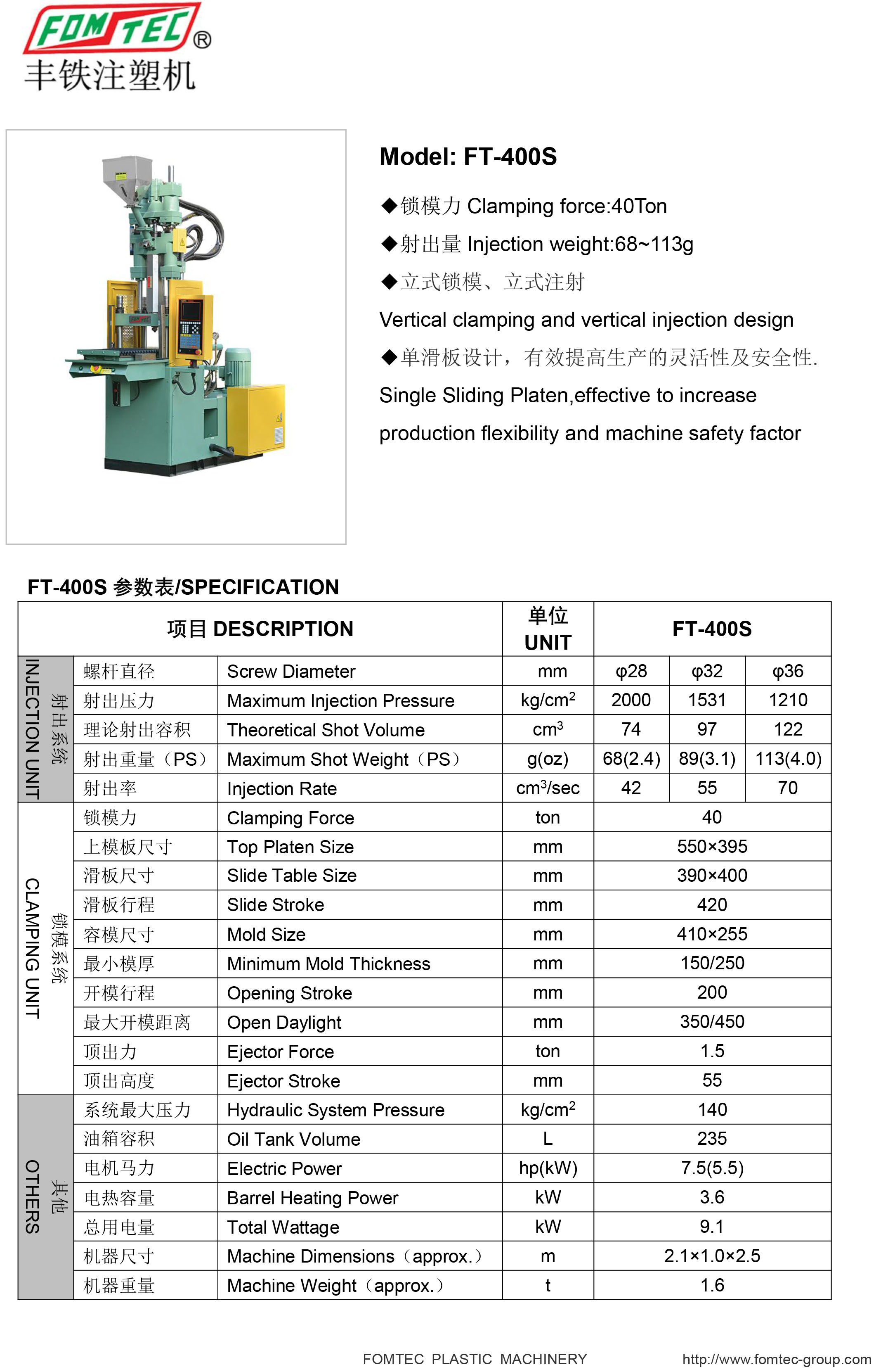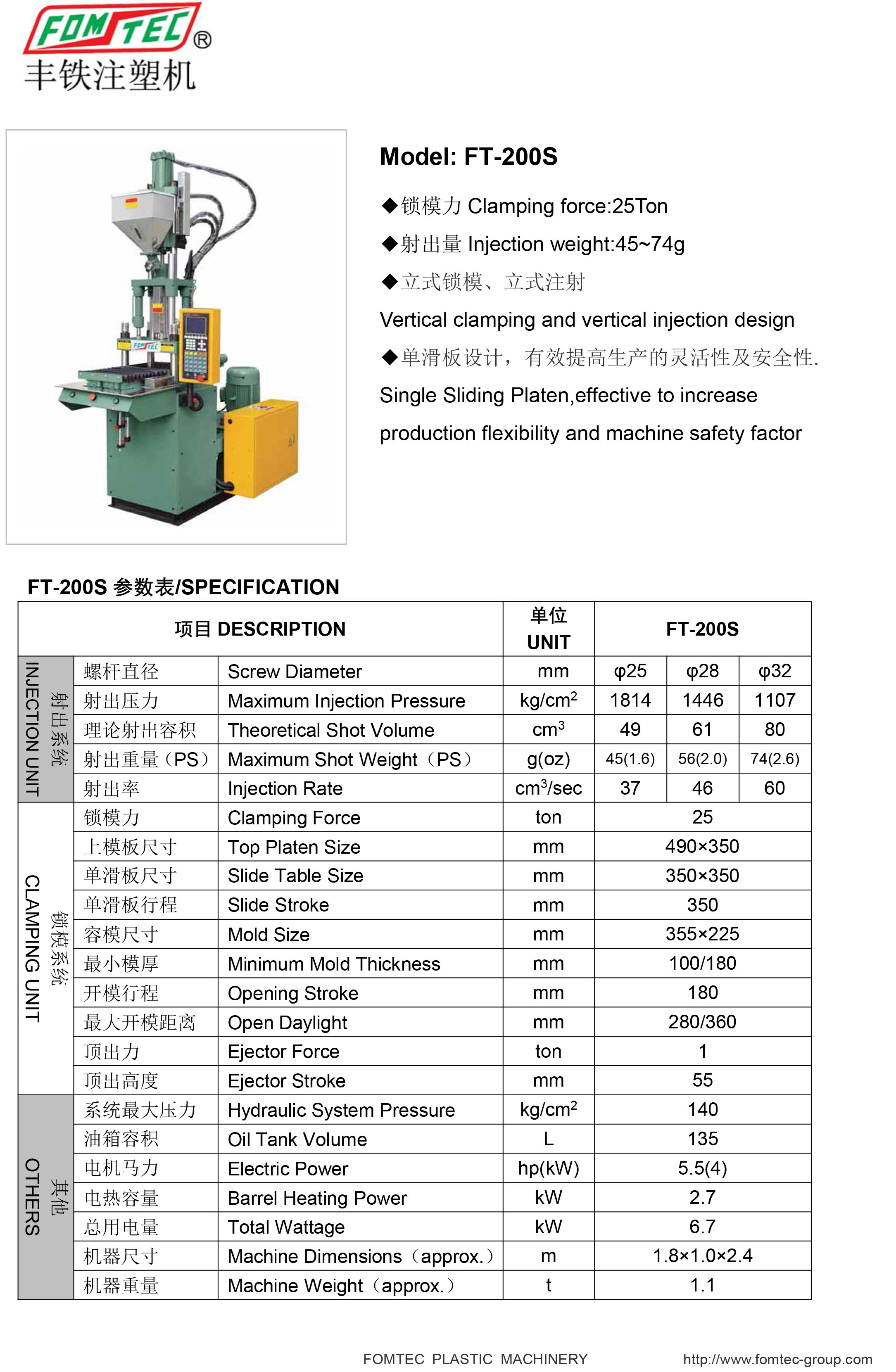 產品名稱:FT-S單滑板注塑機系列